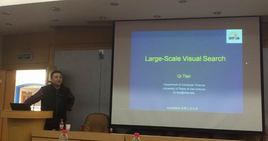 12月19日,应百富策略bfball手机版邀请,美国德州大学圣安东尼奥分校田奇教授访问我校并在学术会议中心作了题为“大规模视觉搜索”的学术报告。报告会由杨学志副院长主持,来自计算机、通信与电子系的近百位师生踊跃参加了此次报告会。