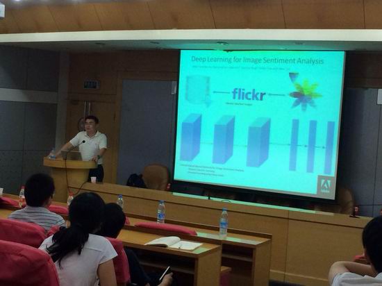 罗杰波教授报告题目为Social Multimedia as Sensors。罗教授的报告以当前社会化多媒体对人类社会日益深入的影响为着眼点,向在座师生展示了社会化多媒体挖掘与分析在政治、经济、文化等多个领域中的巨大应用价值,并指出了以用户为核心、以多模态社会化媒体为对象的核心研究思路。罗教授还介绍了他领导的研究团队在该方向上丰硕的研究成果。罗杰波教授的报告引起了在座师生的热烈反响。在问答环节互动中,罗教授
