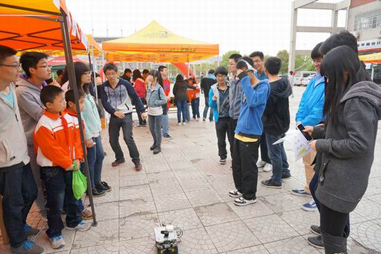 此次科技节开幕式展区呈现“IT”的字母形状,与我院特色专业计算机息息相关,共设置四大版块,分别是以动手实践能力为主的装机大赛区,以科技前沿展示为主体的实验室作品区,以各高校优秀学生作品为主体的C9高校联盟展品区,以未来科技为主体的体验区。合肥C9高校联盟成员中国科技大学、安徽大学等6所高校,百富策略bfball手机版分布式控制实验室、计算机应用技术实验室等6个实验室的30余项学生自制高科技展品纷纷亮相科技节开幕式,有飞思卡尔智能小车,机器人舞蹈展,意念控制小车,智能追溯系统,航模等展品,有移动4G,火狐电脑小插件,体感游戏机等现场体验品,还有装机大赛,混乱代码大赛等项目比拼。