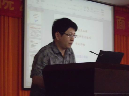 接下来,学院的党委书记蒋建国老师对新生进行了深刻又生动的入学教育。他指出“大学不是人生奋斗的终点而是起点,大学生应珍惜大学时光,制定明确的目标,做到心中有数”。鼓励11级新生志存高远,努力学习科学文化知识,陶冶自己的内涵修养,秉承“厚德,笃学,崇实,尚新”的校训,成为创新型人才。整个过程蒋建国教授都是以一位充满智慧的长者身份在为新同学进行谆谆教导,号召同学们合理规划自己的大学生活,努力成为祖国的栋梁之才!